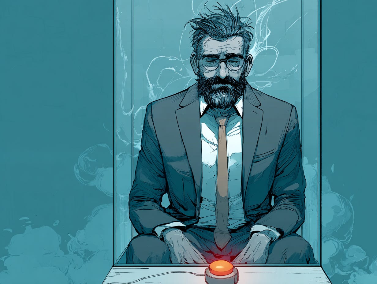 Kyle is a friendly coworker, and you’re both trapped in glass cubes by some deadly (and very technologically savvy—kudos!) psycho. In front of both of you is a red button. Press the button, the other person dies, and you live.